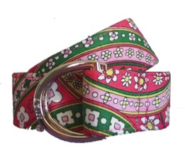 This whimsical 'Daisy' print, will certainly dress any style outfit to completion.  This style was selected by us and made for you! This fabric belt is from our Signature Series Line. Each belt is hand made and made to order.   This belt is pictured with our 'silver' color buckle or you can select from our other styles.