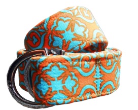 The fiesta of 'Orange and Turquoise' colors, will certainly dress and brighten any style outfit to completion. This style was selected by us and made for you! This fabric belt is from our Signature Series Line. Each belt is hand made and made to order. This belt is pictured with our 'silver' color buckle or you can select from our other styles.