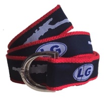 This navy Lake George ribbon print was designed by us and made for you! This ribbon belt is from our Signature Series Line. Each belt is hand made and made to order. This belt is pictured with our 'Silver' color Signature D-Ring.