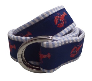 This nautical Lobster print was designed by us and made for you! This ribbon belt is from our Signature Series Line and is paired with a summer seersucker. Each belt is hand made and made to order. This belt is pictured with our 'Silver' color Signature D-Ring.